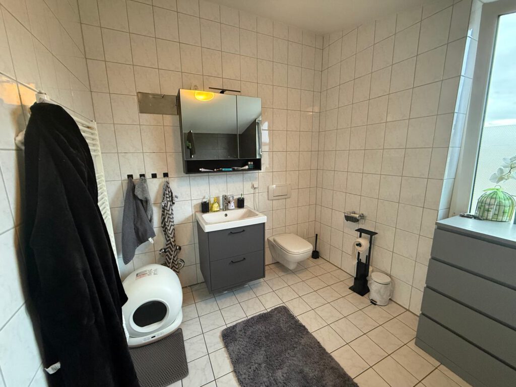 Das große Bad mit Fenster wurde neugestaltet. Die schicke Dusche fällt sofort ins Auge. Die Fußbodenheizung sorgt für ein gutes Raumklima in allen Räumen. Die Heizkosten sind gering.